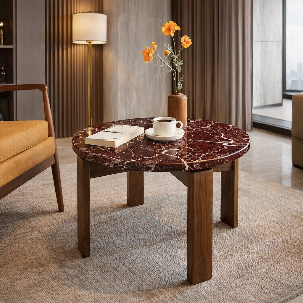 Masif ahşap ayaklar üzerine yerleştirilen doğal mermer tabla ile tasarlanan Luna Mermer Sehpa, mermerin güçlü ve dayanıklı yapısını sade ve dengeli bir formda bir araya getirir. Yumuşak hatları ve işlevsel ölçüleriyle ev ve ofis kullanımına uyum sağlar, farklı dekorasyon stilleri içinde dengeli bir görünüm sunar.
