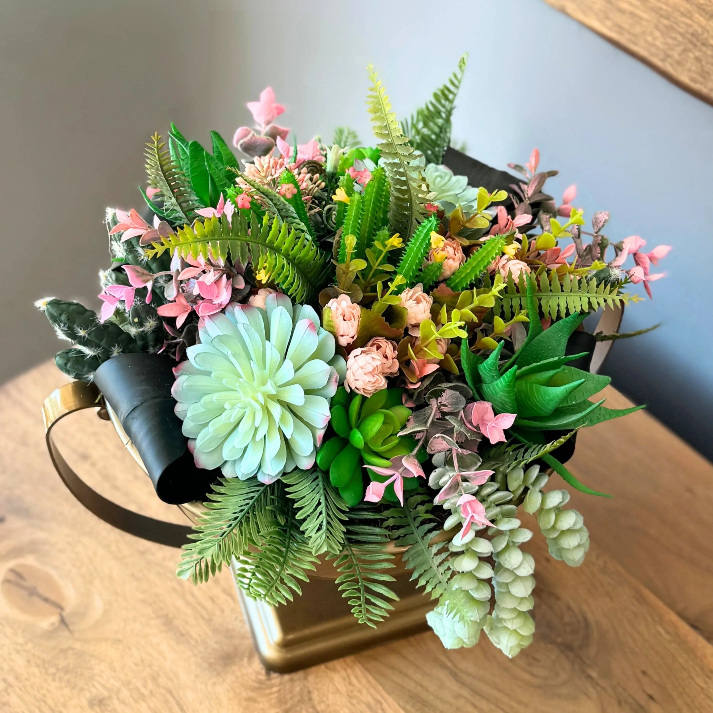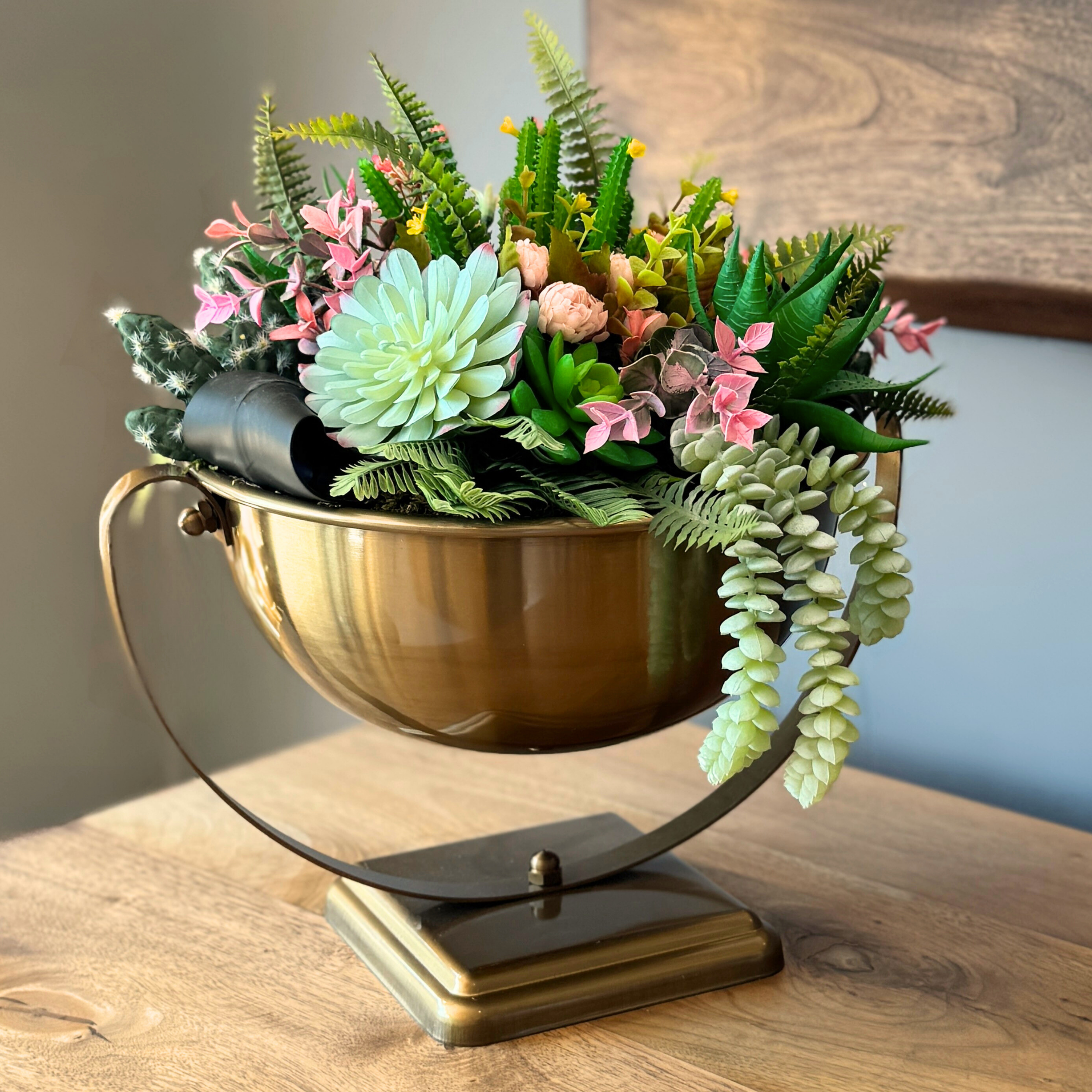 • Salıncaklı Yapay Sukulent Aranjmanı, 1. kalite yapay sukulent çiçekler ile özenle hazırlanmıştır
